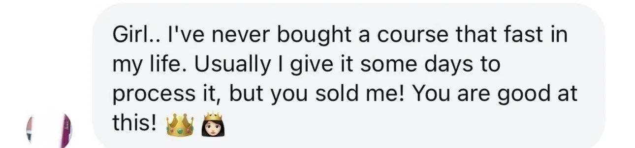 And right now? You’re spending too much time in your DMs explaining what you do… just to hear “it’s too expensive.” So you explain it again. You say it differently. You add more. Because you know you can help her.