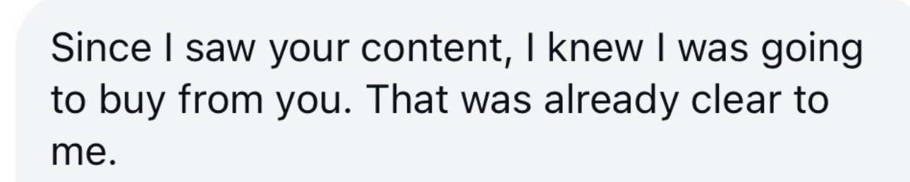 And your content? It’s good. It ticks all the boxes. People LOVE it. Fire emojis. “So inspiring.” Over and over again. But they don’t move yet.